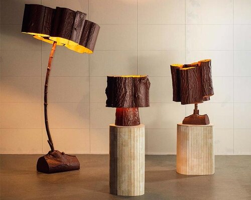 biodegradable thermoplastic casts tree bark and branches into light sculptures