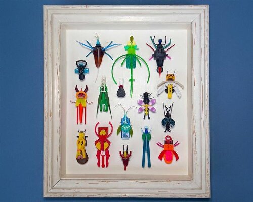 litterbugs reshapes plastic waste into fragile insect sculptures