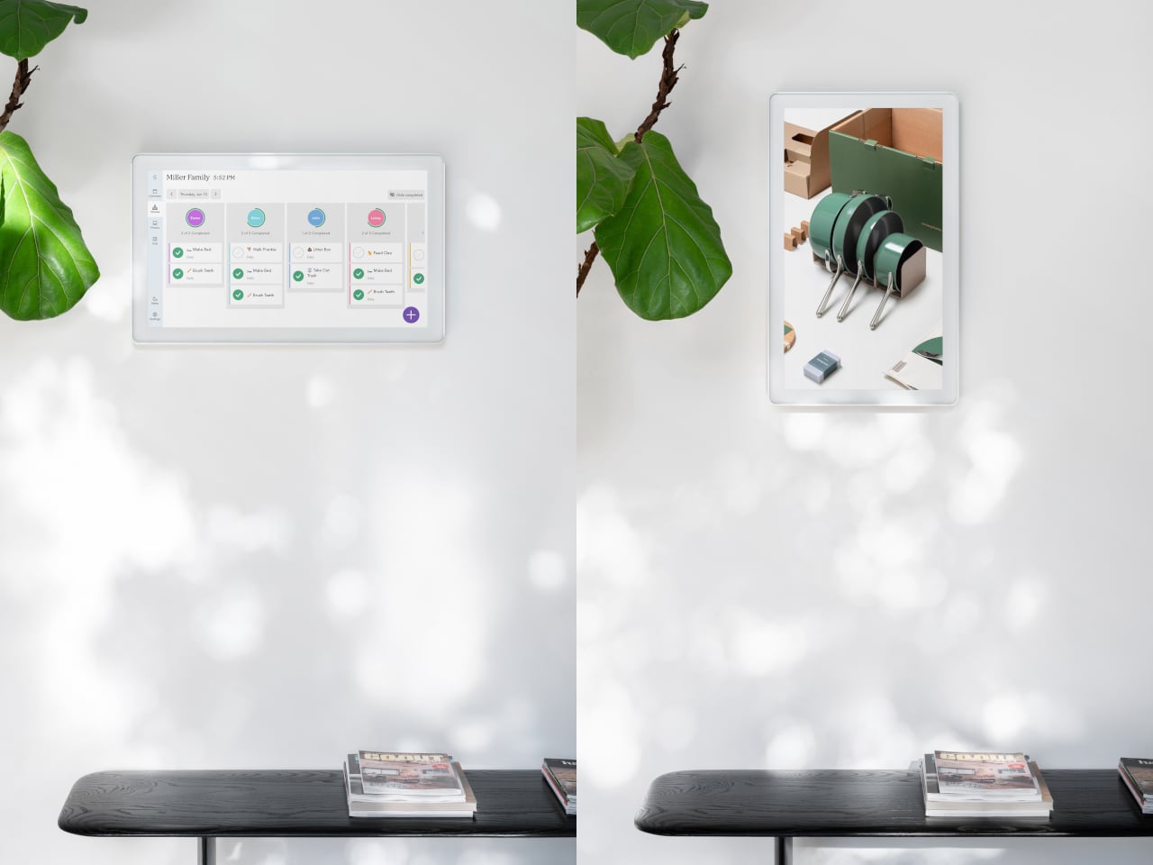 During busy hours, it behaves like a bright, legible planner. When things slow down, it can switch to a photo gallery, turning into a large digital frame that shows family pictures instead of to-dos. That shift helps it feel less like a dashboard that never sleeps and more like a living part of the wall that changes mood with the house.