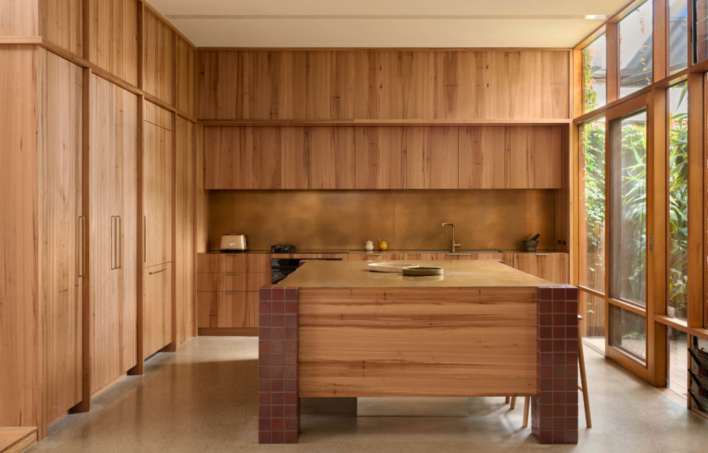 New features and materials, such as the uncoated brass top kitchen island bench, are designed to literally reflect the property’s life and the memories created by Scott and Loci as it ages.