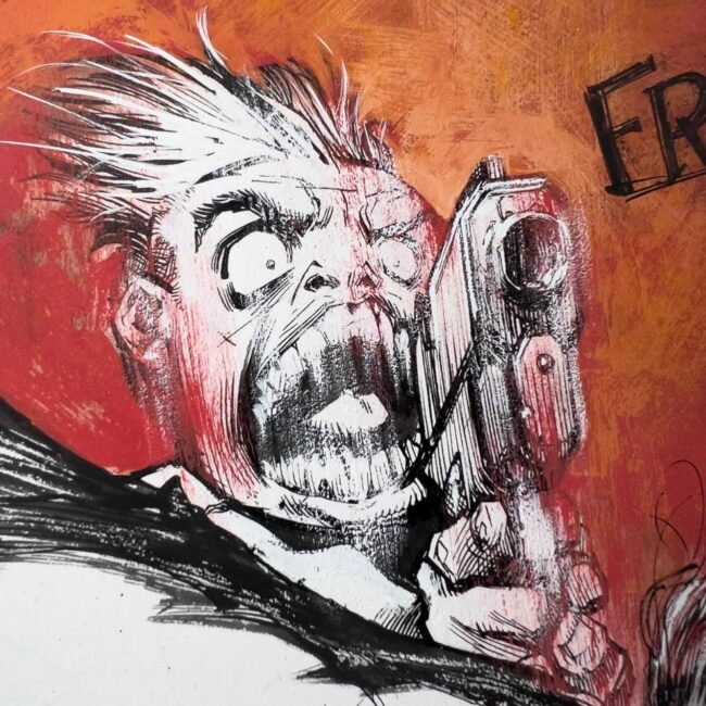 He regularly posts sketchbook pages, livestream doodles and commissions—ranging from Hulk, Weapon X and other Marvel characters to xenomorphs and monster designs—often described as “sketches with attitude” that show his improvisational, mark‑making‑driven process. His work appears in projects like Heavy Metal and creator‑owned comics such as “Cul‑De‑Sac,” for which artists like Jim Mahfood have drawn variant covers, reinforcing his place within the alternative, neo‑psychedelic comics scene.