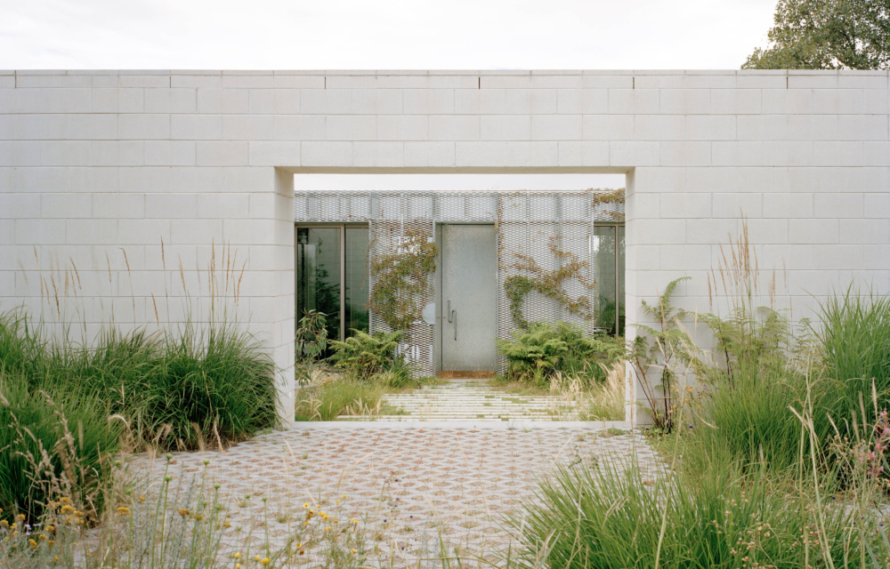 Robust blockwork walls form an unconventional partition at the entrance, softened by the wild appearance of a soft and loose native garden, designed by Sarah Hicks of Emergent Studios.
