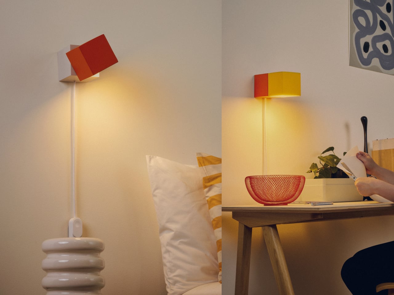 Granneberg’s line about wanting something fun he would enjoy looking at during the day is the key. The stacked cubes and bold color blocking nod to Lego and building blocks without becoming literal toys. They are serious enough to light a desk or a reading corner, but soft enough in shape and proportion that they feel like characters in the room rather than anonymous fixtures you ignore until you need to turn them on.