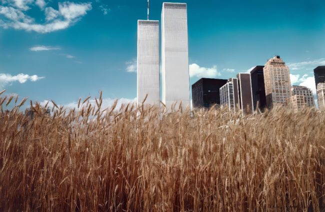 In 1982, conceptual artist Agnes Denes transformed a barren landfill near Wall Street into a two-acre wheat field for her project *Wheatfield – A Confrontation*.