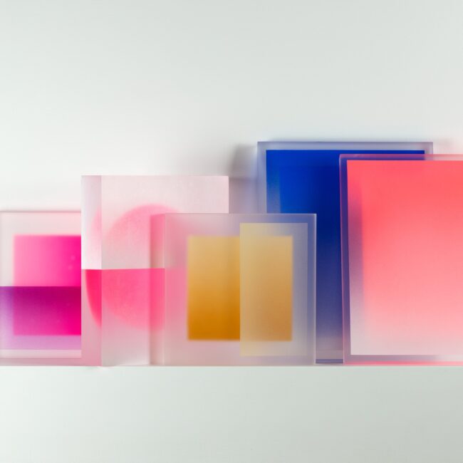 His career began with a love for graffiti and typography, later evolving into a refined practice that bridges 3D design, illustration, screen printing, and sculptural installations. Using layered acrylics, gradients, and clean minimalist compositions, Paulusse creates ethereal “lightscapes” — artworks that blur the boundaries between the virtual and tangible, glowing as though illuminated from within. His pieces are characterized by soft textures and spatial harmony, inviting viewers to move around them to experience how light shifts across their surfaces, reinforcing his recurring theme of perception and movement. Rutger has exhibited internationally, collaborated with global brands like Google and Sabine Marcelis, and consistently explores how digital aesthetics translate into physical form through his “New Dutch Minimalism” collection and immersive displays.