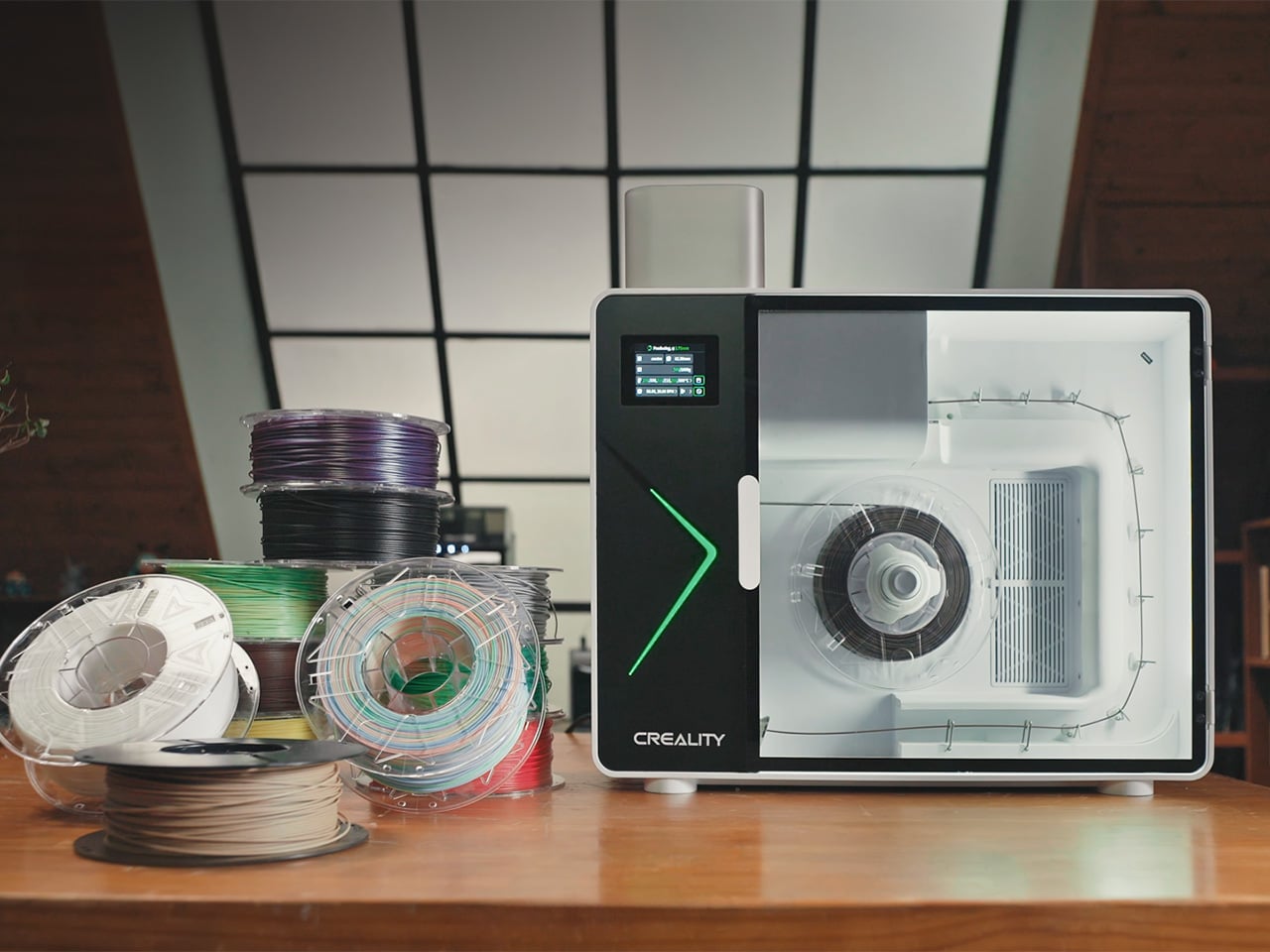 Recycled plastics and reinforced composites demand serious torque, and the M1’s 210mm extrusion screw and 100W FOC servo motor deliver it by maintaining a uniform melt pool and defect-free output even with challenging feedstock. Three independent heat zones give you granular temperature control up to 350 degrees Celsius, unlocking 8+ material types including PLA, PETG, ABS, PA, PC, PET, ASA, TPU, and carbon or glass fiber composites, while the three-stage distribution eliminates cold spots to ensure unwavering heat uniformity throughout the melt path. Eight 7W turbo fans cool your filament in a rapid multi-stage sequence, locking in diameter accuracy and molecular structure immediately after the nozzle to produce perfectly circular, stable filament ready to print right off the spool. The entire production line fits into a 15 kg desktop unit measuring 555 x 245 x 570mm, with extrusion, active cooling, precision pulling, and automatic spooling all happening inside one machine with no separate stations or assembly line required. Industrial filament makers occupy entire rooms and cost tens of thousands of dollars. Creality compressed that into something the size of a large microwave.