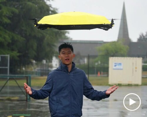 The post autonomous flying umbrella follows and shields users from rain and sunlight appeared first on designboom | architecture & design magazine.
