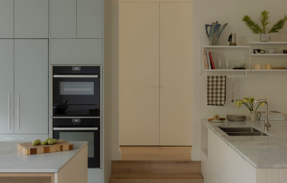 ‘Cath also has a great collection of art, books and trinkets collected over her life; I wanted to ensure the kitchen allowed for display of these items,’ designer Sarah O’Brien says.