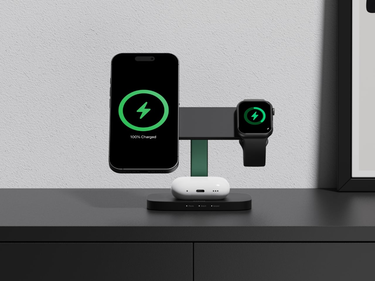VLND Studio’s approach here is refreshingly practical. The 3-in-1 station delivers 15 watts of rapid charging power, which means your devices actually charge quickly instead of just sitting there looking pretty. The hexagonal shape isn’t just about aesthetics either. It creates structured storage areas that guide where you place your devices, reducing that annoying fumbling around trying to find the sweet spot for wireless charging. The geometry actually helps with alignment and optimizes the limited real estate on your desk or nightstand.
