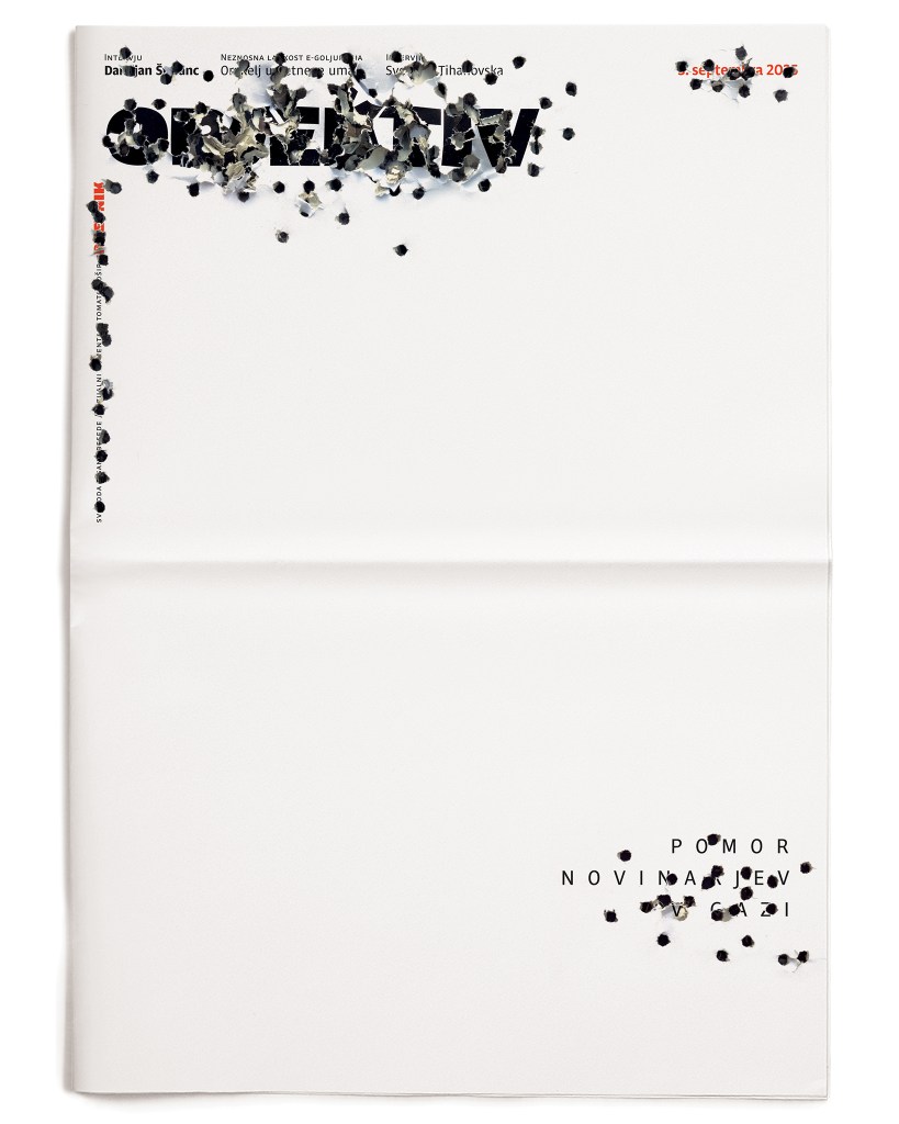 “Above is the cover of Dnevnik’s Objektiv, a Saturday’s supplement of Slovenia’s biggest newspaper. Yes, it is almost unreadable,” writes the designer Tomato Košir, “but the very loss of objective information was the point we were conveying.” A burst of gunfire gives this cover a sense doom. About 220 journalists have been killed during Israel’s […]