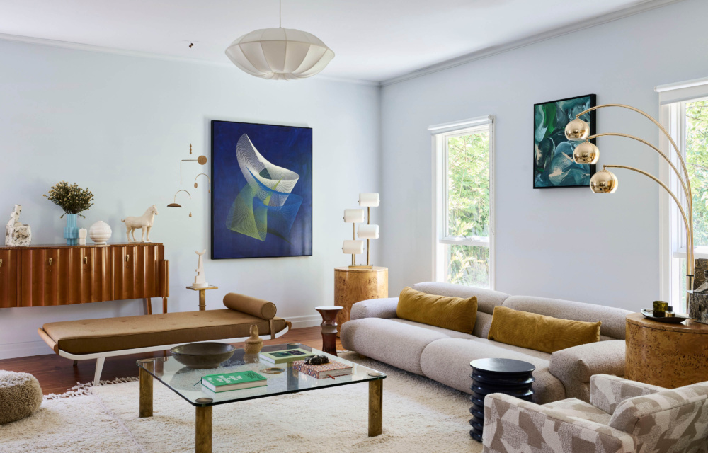 Stylist Kelly Thompson’s Colour-Rich, Happy Home Homes by Amelia Barnes Custom paint colour by Tint, available on request. Rugs from Etsy. Pendant by Oi Soi Oi from Lander—Se. Vintage sideboard, daybed, coffee table, bowl, small plinth, armchair, and floor lamp. Mobile by Fellows Mobiles. Sculpture by Neighbourhood Studios. Painting by Kate Banazi. Smaller painting by […]