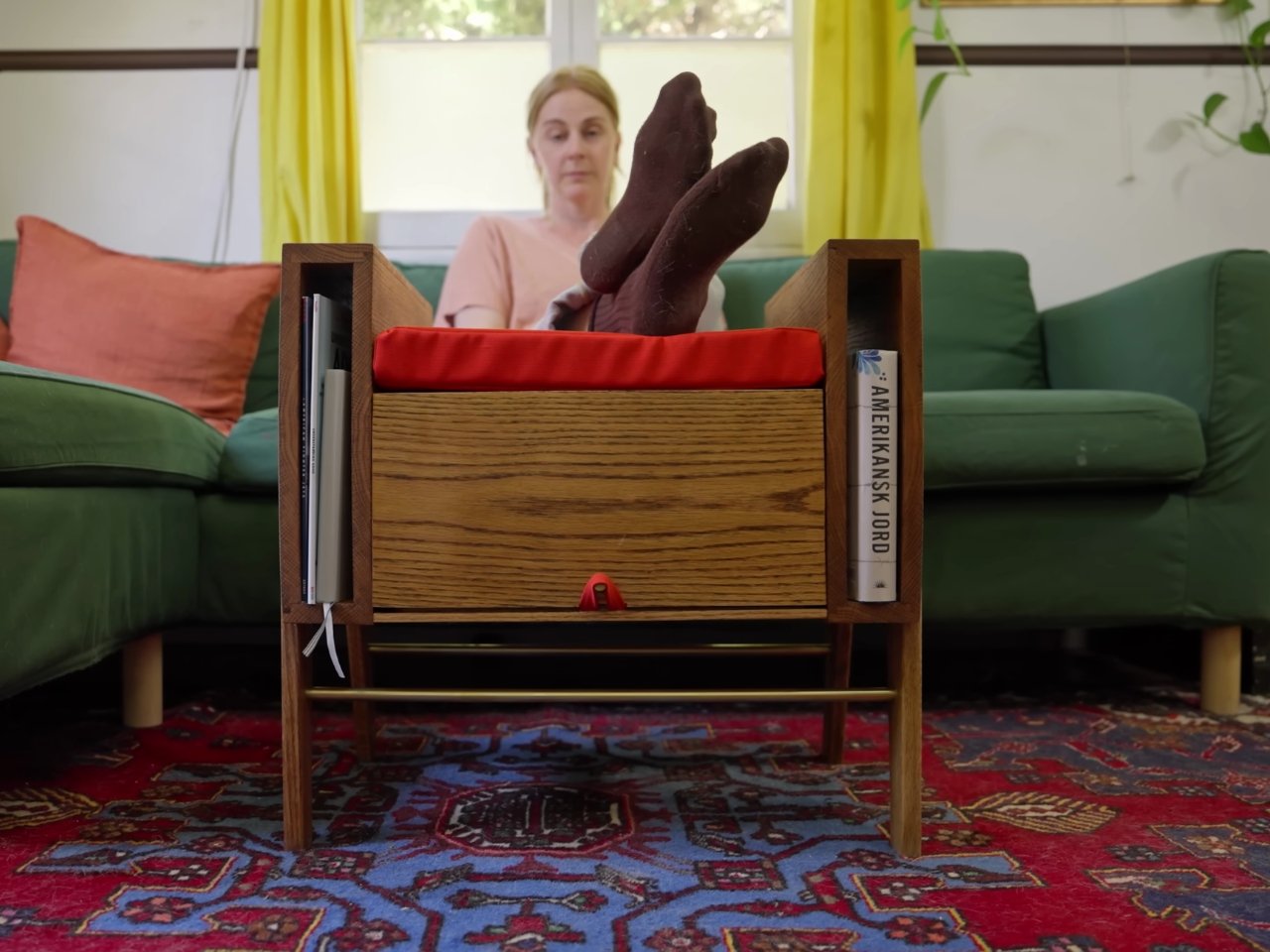 One of the most delightful features of the spinning coffee table is its playful functionality. Whether you’re hosting a game night or just relaxing with your favorite snacks, the rotating surface turns the table into an ottoman where you can put your feet up. It also acts as a storage so you can place some stuff that you want to be accessible to you. It has mini shelves and a space under the ottoman where you can put things. It’s a simple idea, but it adds a layer of interactivity that’s both practical and fun.