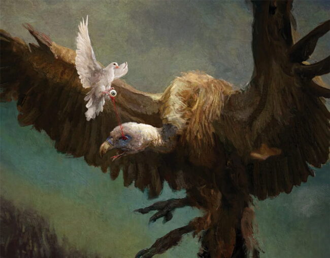 Working in a rich, classical‑meets‑dark‑fantasy style that preserves visible brushstrokes even in digital pieces, he builds symbolic, narrative‑heavy scenes around each band’s themes, then releases limited edition, signed fine‑art prints and premium giclée editions of landmark covers like “Dear Desolation,” “Convalescence,” “Amputheatre” and “Unholy Deification” through elirankantor.com with worldwide shipping. His Instagram mixes new artworks, process insights, exhibition and festival appearances (Wacken, Bloodstock, solo shows) and reflections on career‑building, including advice on originality, concept development and channeling anxiety and obsession into intense attention to detail.