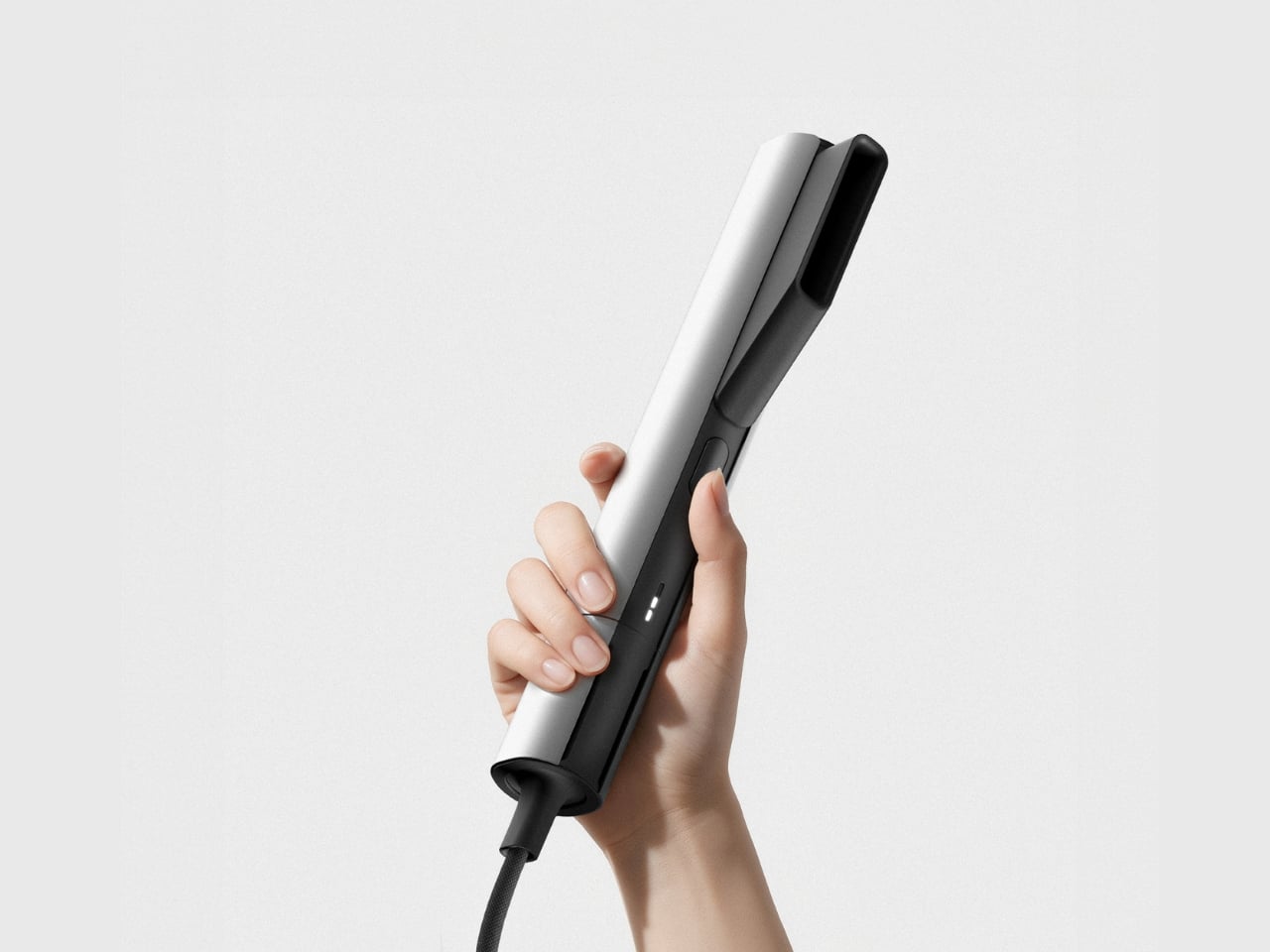 At first glance, FloX reads as almost severe in its minimalism. The body splits into two distinct halves: a cool silver exterior paired with matte black accents that house the business end of the tool. This isn’t decorative contrast for the sake of looking expensive. The two-tone design actually signals function, showing you exactly where to grip and where the heat lives. It’s honest design that respects your intelligence.