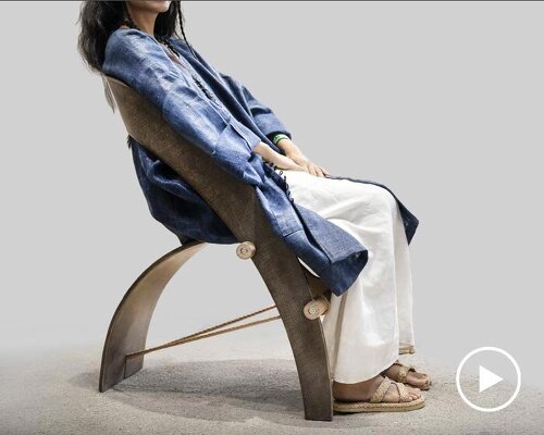 The post hemp fabric and pineapple-leaf fiber composite form a chair built on balance and tension appeared first on designboom | architecture & design magazine.