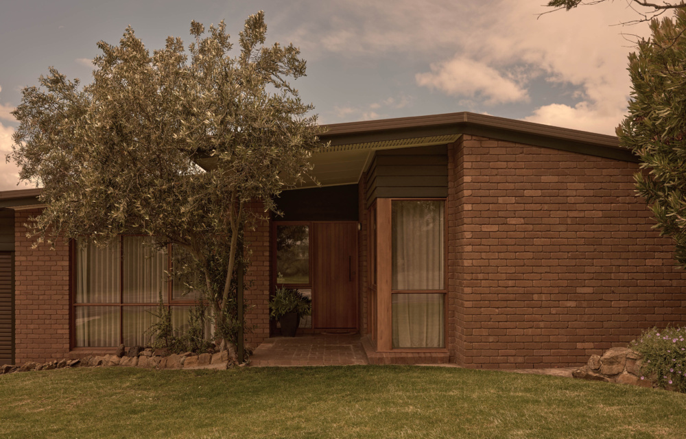 Laminex Teak joinery matches the existing doors, paired with oak timber floorboards that offset these darker tones. These materials look right at home in the updated interiors, harmonising with the original entry tiles, exposed brickwork, and robe fronts. The overall outcome is a functional, character-filed home tailored perfectly for Kaylene’s family, yet entirely respectful of its 1970s roots.