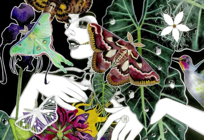 Kirsten Schaap is an illustrator based in Amsterdam. She describes her art as entering the realm of the “Dark Queen,” often focusing on detailed, moody, and fantasy-inspired themes.