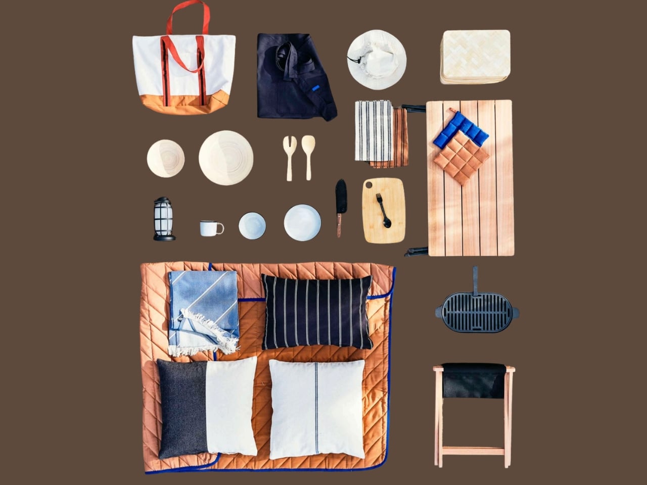 Beyond the cooking gear, the collection extends into territory that most camping lines don’t bother with. A dimmable LED lantern for $24.99 handles ambiance as much as function. A quilted throw at around $20 and cushion covers at $6.99 make the case that comfort outdoors shouldn’t feel like a compromise. A multi-pocket tote bag at $16.99 with a drawstring closure handles practicality, and a wide-brim cotton hat at $7.99 that folds flat rounds out the wearable end of things.