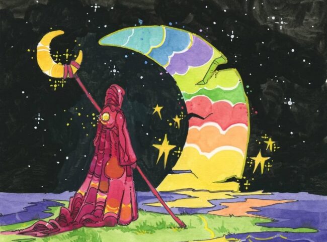 John Gagne is a fantasy illustrator specializing in world‑building, watercolor character designs and surreal concept art like “The Ghost King” and “Crimson Wizards,” blending pop surrealism with dark, atmospheric fantasy themes.