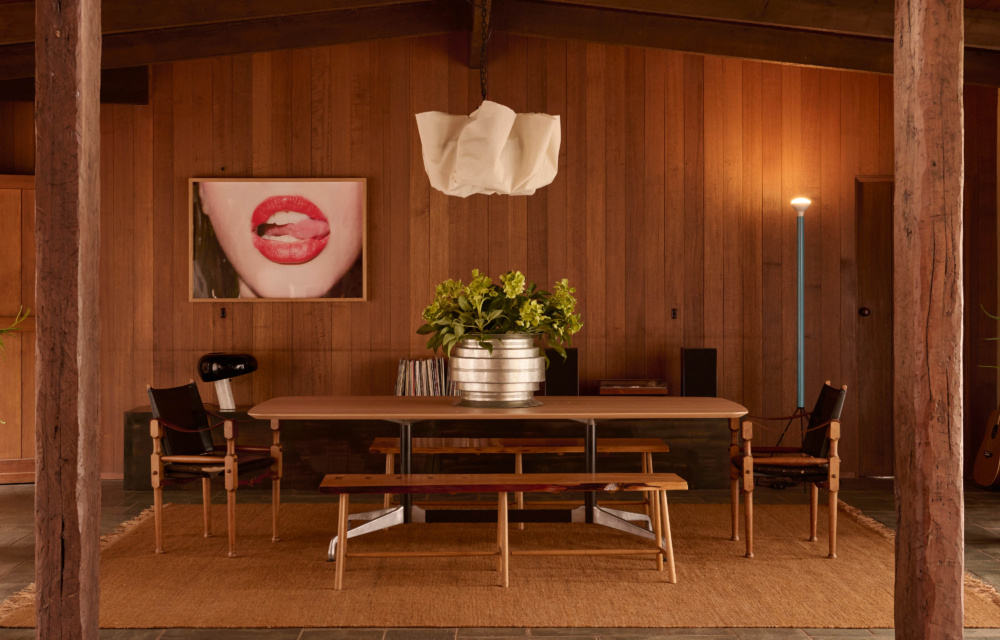 Their styling reflects the tones and textures of the natural materials and landscape, creating an atmosphere that feels warm and highly personal. ‘While we’re drawn to several eras and styles of design, we find ourselves especially influenced by Italian mid-century pieces and also Japanese sensibilities mixed in,’ says Shari.