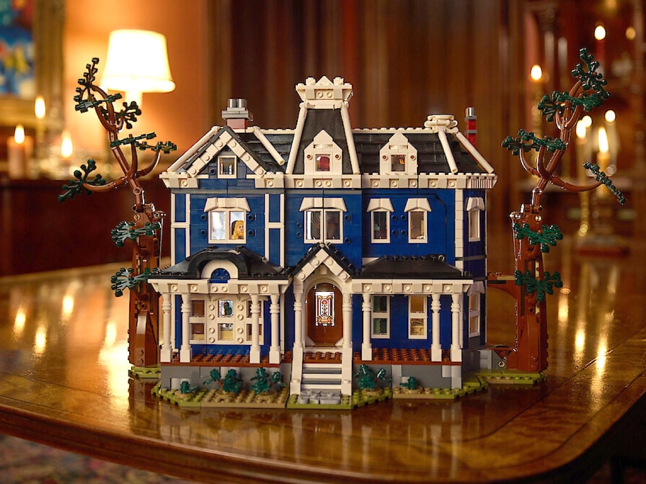 LEGO calls it their first ever transforming house. Pull the corners and the entire structure reconfigures itself: some rooms split in two, others rotate 45 degrees, one wall drops into place, and the central spire rises up to reveal that infamous grandfather clock. Most LEGO sets with transformation gimmicks feel like compromises, sacrificing detail in one mode to accommodate the other. You get a decent robot or a passable vehicle, never both. This thing maintains a 20-inch-wide, nearly 12-inch-tall facade in both states, which means someone on the engineering team actually gave a shit about making both configurations work properly instead of treating one as an afterthought.