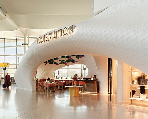 The post marc fornes / THEVERYMANY lands fuselage-like louis vuitton café and store at heathrow appeared first on designboom | architecture & design magazine.