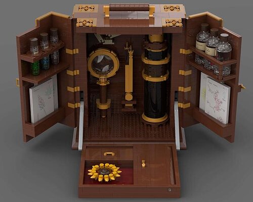 The Botanical Field Kit is a digital LEGO build inspired by 19th‑century naturalist tools and portable exploration cases. The project combines vintage aesthetics, botanical illustration, and the tactile charm of scientific field equipment. The case opens to reveal a collection of instruments: a magnifying device, specimen jars, botanical sketches, and small tools arranged with precision.
