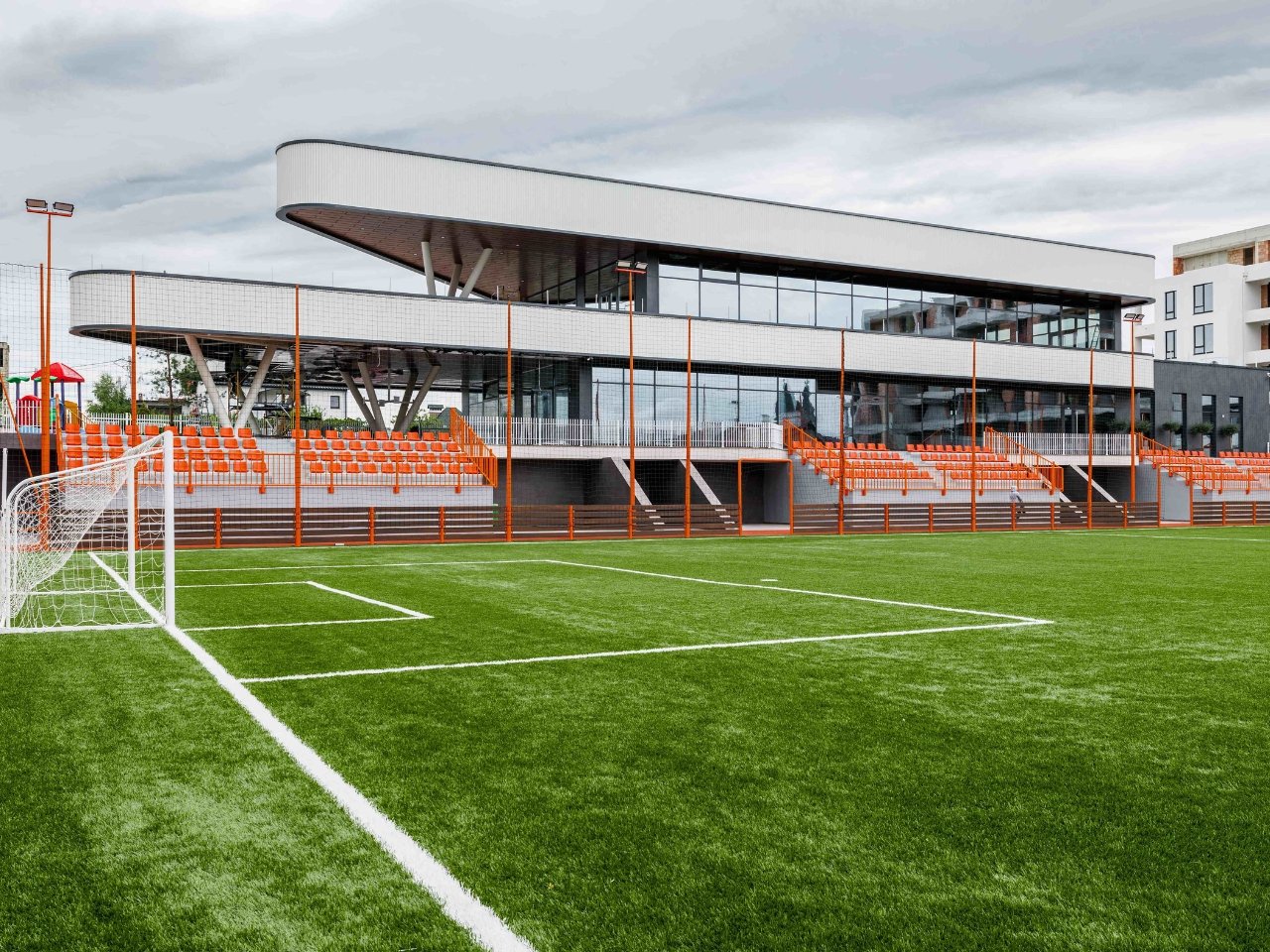 LH47, Moldova’s largest architectural firm, just completed this remarkable project in Durlești, just outside the capital Chișinău. What started as a straightforward kids’ football training facility turned into something far more interesting: a multi-layered community hub that runs partially on sunshine and actually makes sense for how families really live.
