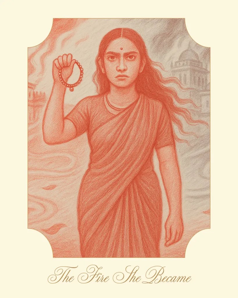 “‘Myth & Mind’ is a 100-day series of tarot-style cards that pair symbolic moments from Indian mythology with modern mental health reflections. The project began as nightly conversations with my grandmother, whose retellings of epics inspired me to reimagine these stories through my own lens. Each day, I listened, researched, and translated the tale into a visual — generating an image and refining it to echo the textures of memory. On the back of each card, I wrote a short, poetic reflection connecting the myth to a present-day emotion — grief, self-doubt, hope, resilience. Through this daily ritual, ‘Myth & Mind’ became a dialogue between generations, myth and mind, past and present — reminding us that the struggles we face today have always been part of the human story.”