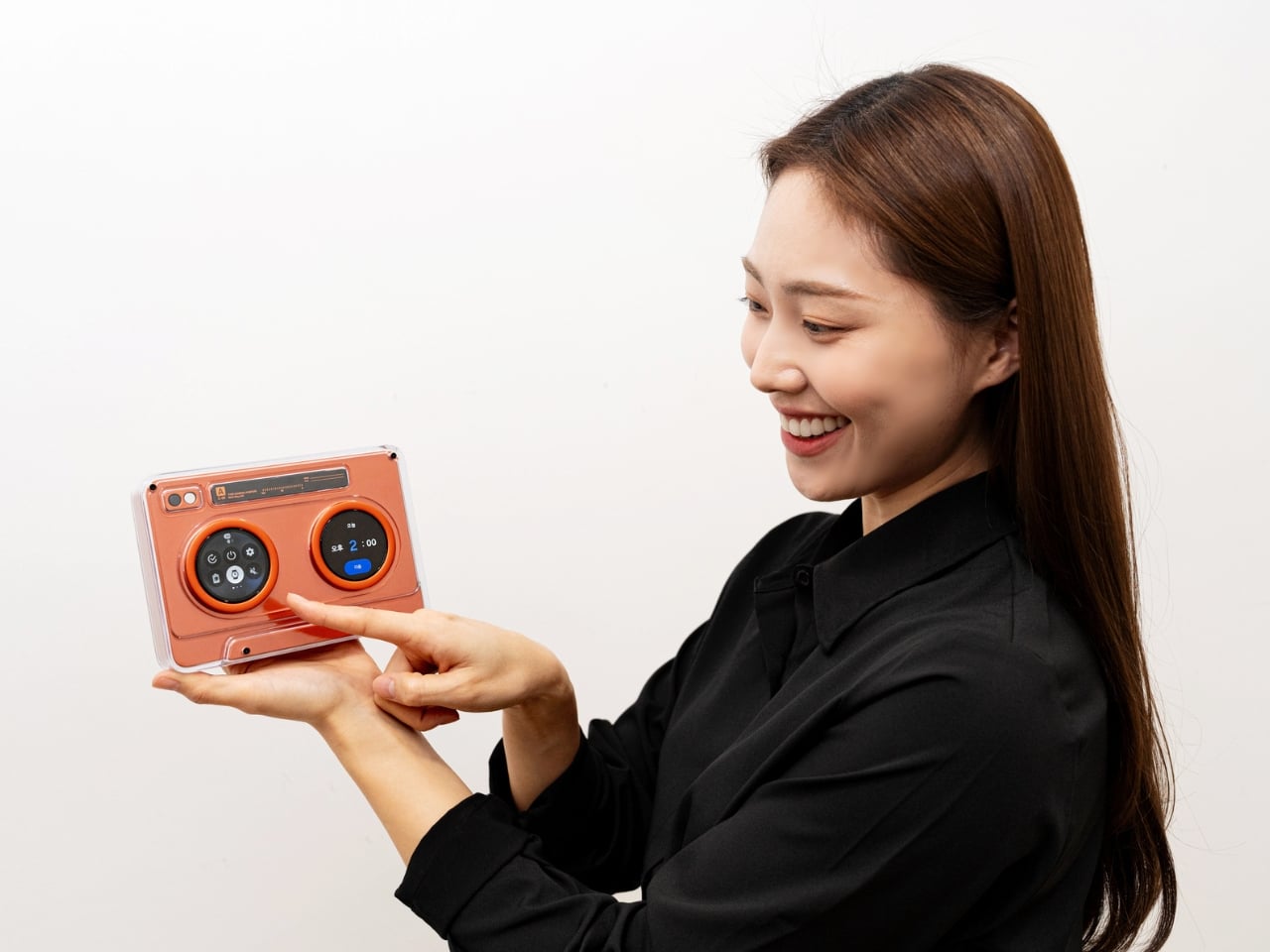 Going further back in the nostalgia trip, the AI OLED Turntable is a 13.4-inch circular OLED touchscreen that looks like an actual vinyl turntable. The turntable display can actually display images and videos to add to the ambience in your space while playing the tunes. Imagine hosting friends and having your turntable show ambient visuals that match the vibe of your playlist. It’s part music player, part art installation, part conversation starter. The large circular display becomes the centerpiece of whatever room you place it in, commanding attention in a way that most modern tech tries to avoid.