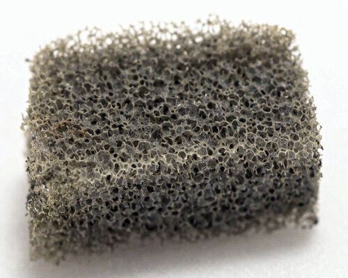 a macro view of the porous, sea‑urchin‑inspired filter material developed for the Electronic Dolphin minibot