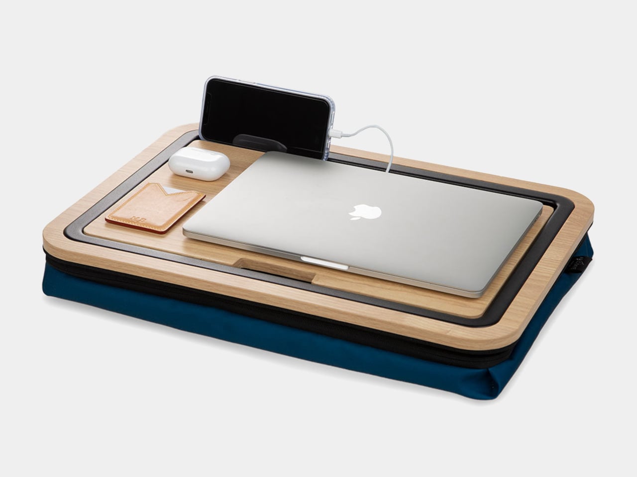 A lot of work now happens on beds, sofas, and in hotel rooms, with laptops balanced on knees and chargers snaking across blankets. Most lap desks are flimsy plastic trays that solve heat and stability but do nothing for clutter, leaving pens, earbuds, and phones scattered around you. The Arlo Skye Stowaway Lap Desk is a piece of travel-inspired furniture that tries to make mobile work feel less improvised and more intentional.