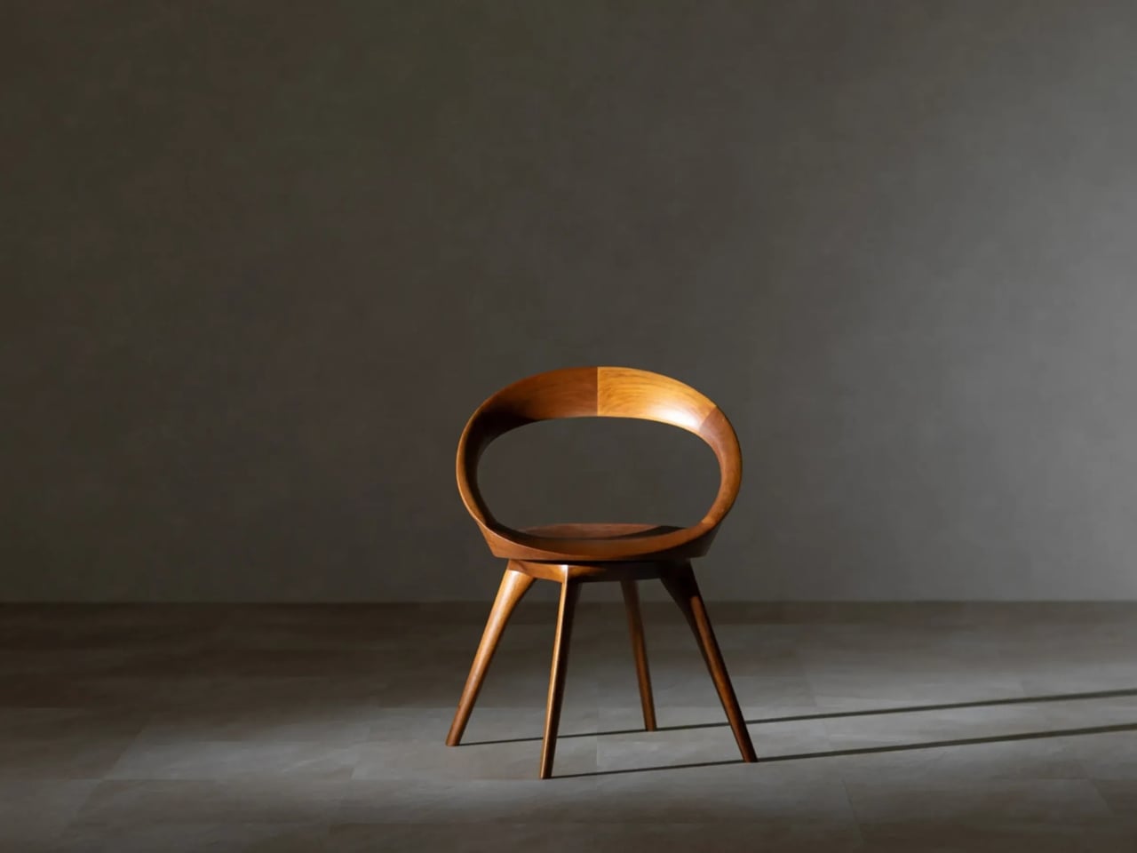 The seat swivels. That detail is easy to miss because Kiritsu Mokko was careful to hide the mechanism, keeping the chair’s silhouette completely uninterrupted. No visible hardware, no break in the form. You can rotate in place and the chair still reads as a single, continuous object. That kind of restraint is its own design philosophy, the idea that if a feature does not serve the visual integrity of a piece, it should be invisible. This is not a new concept in Japanese design, but seeing it executed this cleanly is always a reminder of how much the rest of the furniture world is leaving on the table.