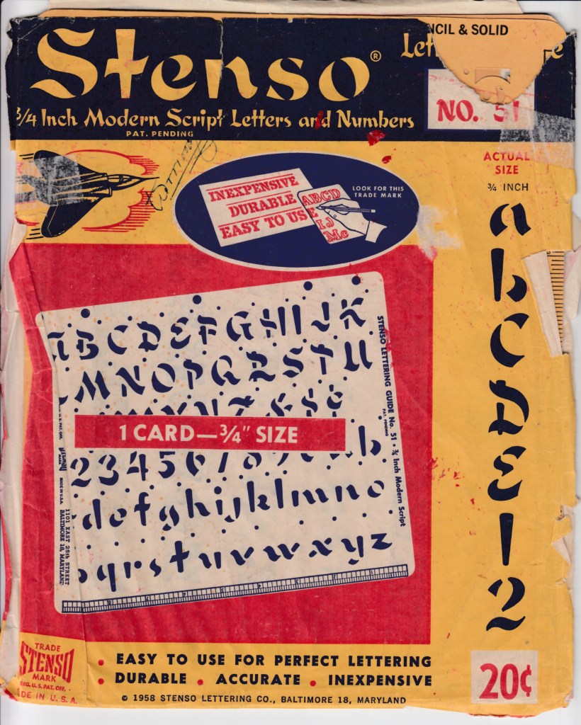 In the 1940s, Ruth created and Robert marketed an easy-to-use stencil letter drawing system for the student, teacher and basic do-it-yourselfer that made drawing lettering for signs, displays and book reports much easier and more efficient. Ruth was a Baltimore teacher and although she did not invent the stencil process, per se, her Stenso guide sheets produced on heavy cardboard (or oak tag) were state of the art long before photo or digital type. “The Stenso Lettering Guide was so unique with its spacing holes (called ‘indicators’ by Hormats) that she submitted her patent design in 1940 and was awarded a patent for her invention in 1942,” wrote Levine in an online article titled A Brief History of the Stenso Lettering Company. Even Macy’s, the world’s largest department store, promoted the product’s versatility through live demonstrations.