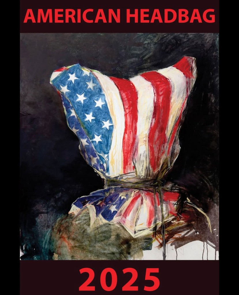David Becker is a sniper. He paints pictures and snipes posters on the streets. His latest project is American Headbag, a series of meditations on the American flag, originally created as an installation of a dozen 60″ x 48″ works on paper, each slightly different and unique, all becoming darker and ending as an image of jail bars.