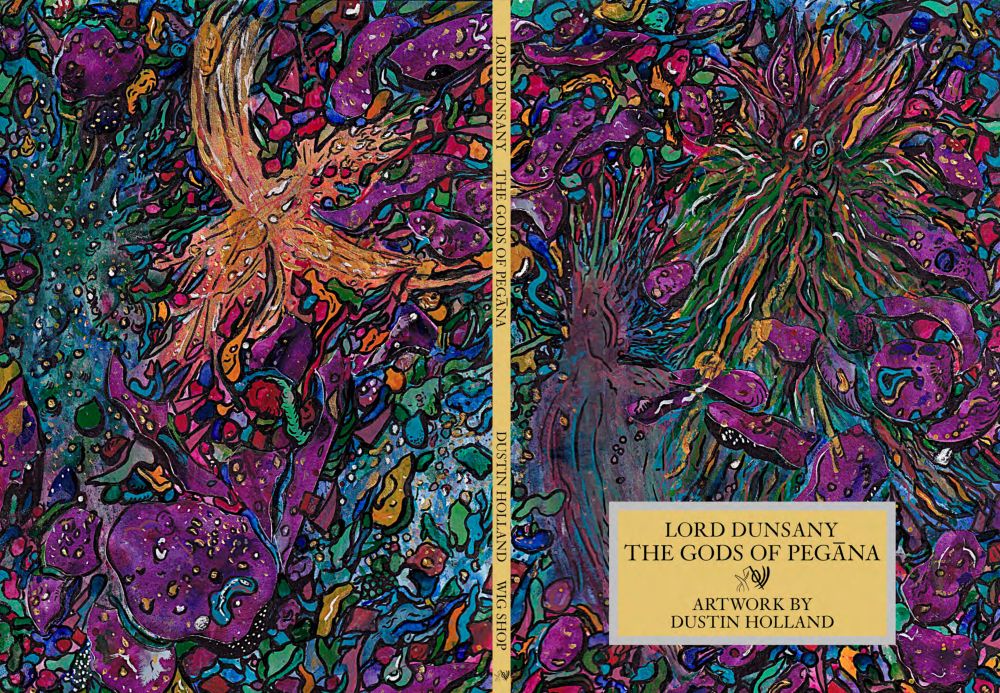 First published in 1905, Lord Dunsany’s The Gods of Pegāna is one of the most important and influential works of modern fantasy literature. The book is a series of short stories linked by Dunsany’s invented pantheon of deities who dwell in Pegāna. It was followed by a further collection, Time and the Gods, some stories in The Sword of Welleran and Other Stories, and Tales of Three Hemispheres. The groundbreaking, imaginative novel introduced readers to a pantheon of unforgettable gods and a rich new mythology that would inspire HP Lovecraft, J.R.R Tolkien, Ursula K Leguin, and generations of fantasy and science-fiction creators. Now Denver’s Wig Shop, a prestige publisher of independent comics and art books, is collaborating with artist Dustin Holland on a hallucinatory visualization of Dunsany’s kaleidoscopic cosmic fancies featuring full-color paintings on every page. The deluxe paperback is coming soon to Kickstarter.