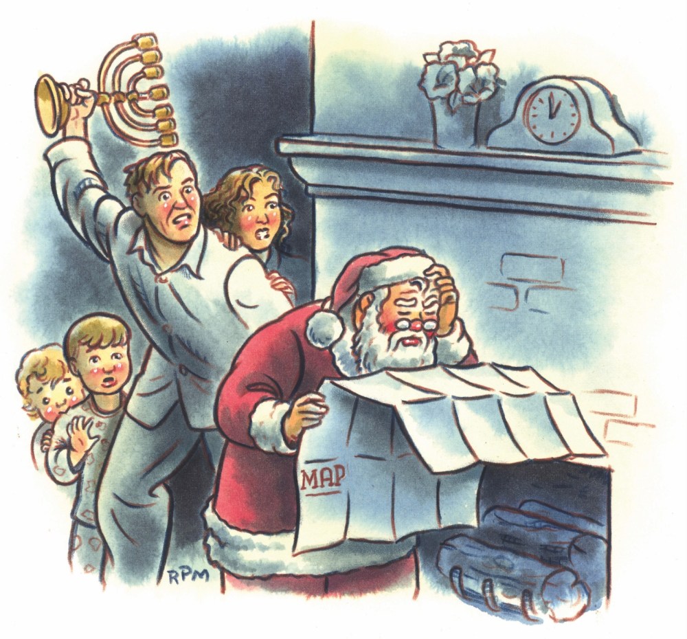 Despite my Ashkenazi Jewish ancestry, every year I deck the halls with boughs of holly, pray for an Irving Berlin–imagined white Christmas, listen on the digital Victrola to Nat King Cole’s “Silent Night” and Vince Guarldi’s “A Charlie Brown Christmas,” watch Miracle on 34th Street (the 1947 version with Edmund Gwenn), The Bishop’s Wife (with Carey Grant, Loretta Young and David Niven), Christmas in Connecticut (with Barbara Stanwyck), A Christmas Affair (with Janet Leigh and Robert Mitchum), Gene Shepherd’s A Christmas Story and Home Alone (the first one) and, of course, Love Actually (now a playlist classic). I repeatedly hum Jimmy Boyd’s euphonious “I Saw Mommy Kissing Santa Claus” and Mariah Carey’s bubbly “All I Want for Christmas is You” (and You and You and You). In lieu of Christmas dinners and parties, I be sitting by my Sharper Image LED tree with joy, listening on Sonos to WQXR‘s marathon Xmas music programming.