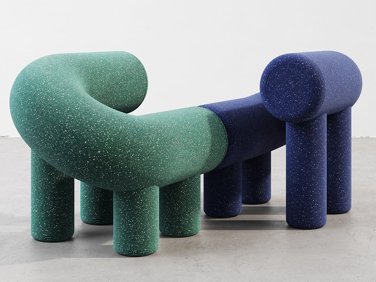 The era of the static, rigid sofa is fading as furniture begins to take on a more expressive role. Pieces are no longer designed to sit quietly in the background, but they carry presence through bold forms and modular compositions. Soft, blobby silhouettes and subtle anthropomorphic details transform chairs and stools into objects that feel almost alive, inviting interaction.