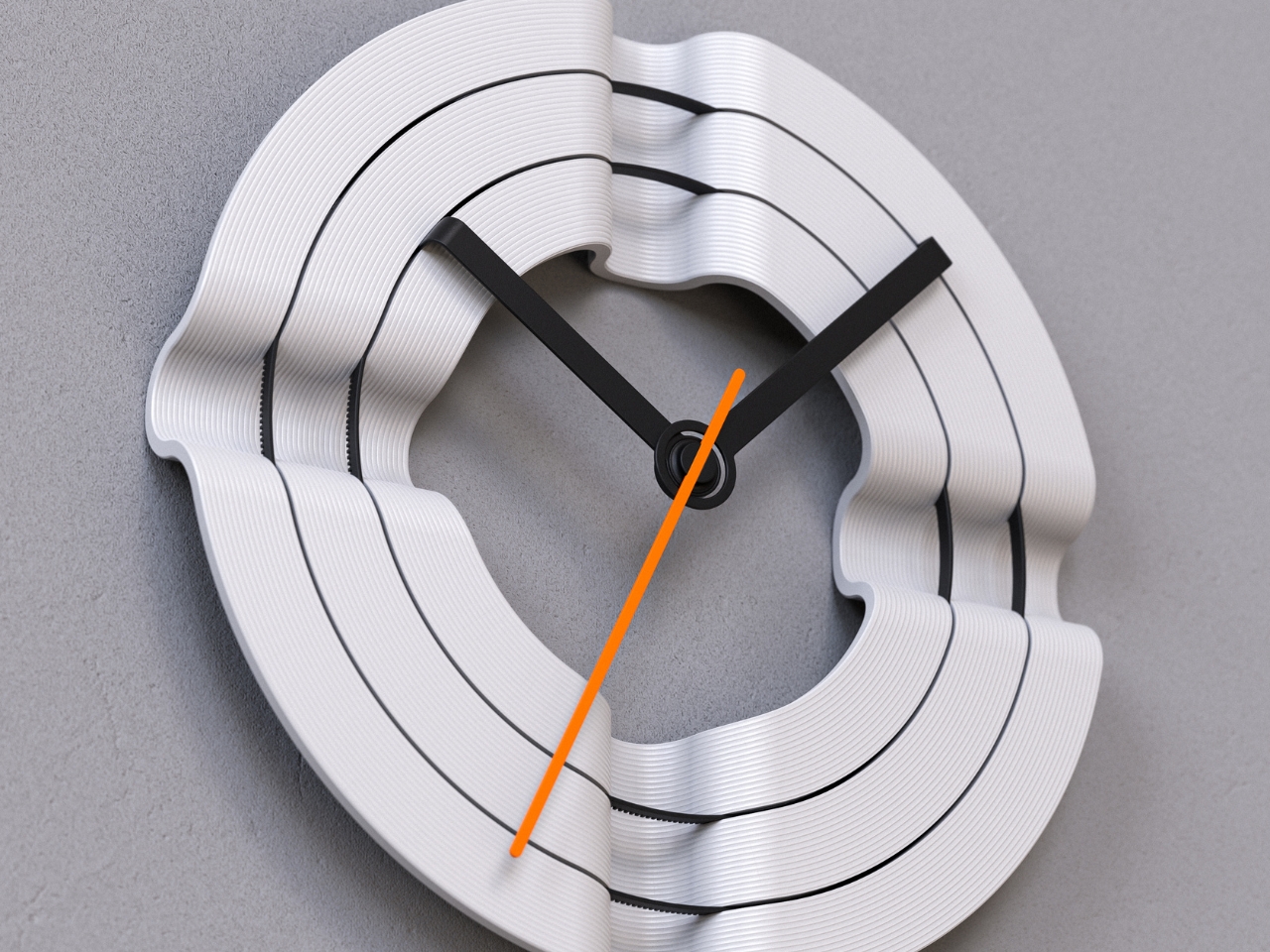 Visually, the Radius Clock has this organic, almost fluid quality. The concentric rings create depth and movement even when you’re looking at a still image. That bright orange second hand provides the perfect pop of color against the white body and black hands, making it feel contemporary without trying too hard to be trendy. You could see this fitting into a modern apartment just as easily as a creative studio or tech startup office.