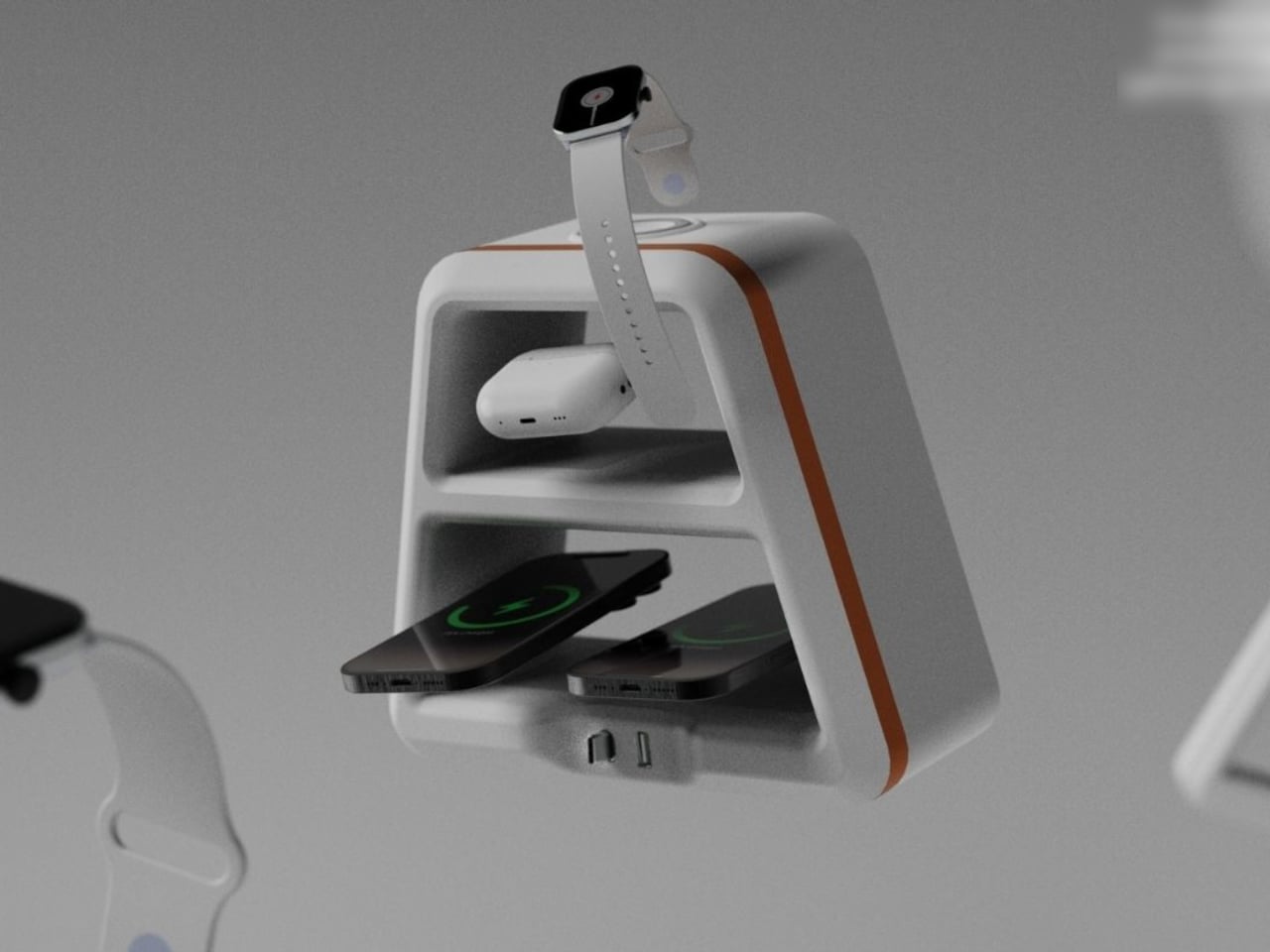 The idea behind Nova is simple but surprisingly rare: instead of designing yet another flat, forgettable charging puck, Amlani went for something you’d actually want to display. The result is a wide, trapezoidal charging station with a sculptural, almost pyramidal silhouette, two open horizontal bays running through its body, and a warm copper accent strip along one side. Put it on a nightstand, and it looks more like a decorative object than a piece of tech hardware.