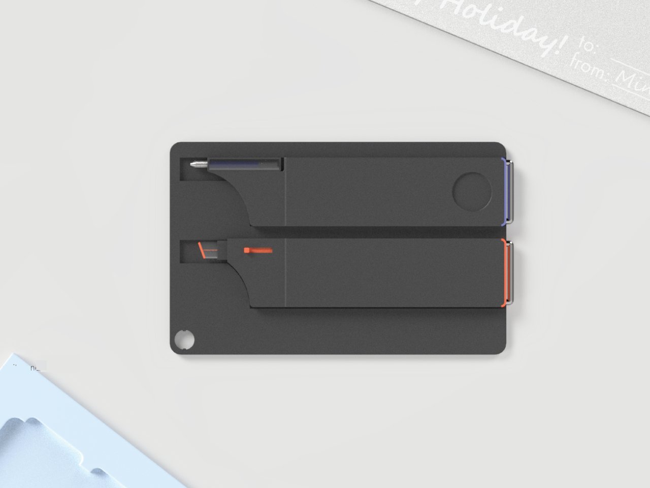 Gifted’s design centers on flexibility and simplicity through thoughtful modularity. The slim card holder features two magnetic slots on the back, each holding a writing tool that slides out easily when needed. You can choose between a pen, pencil, or marker depending on your daily tasks, swapping modules to match your workflow.