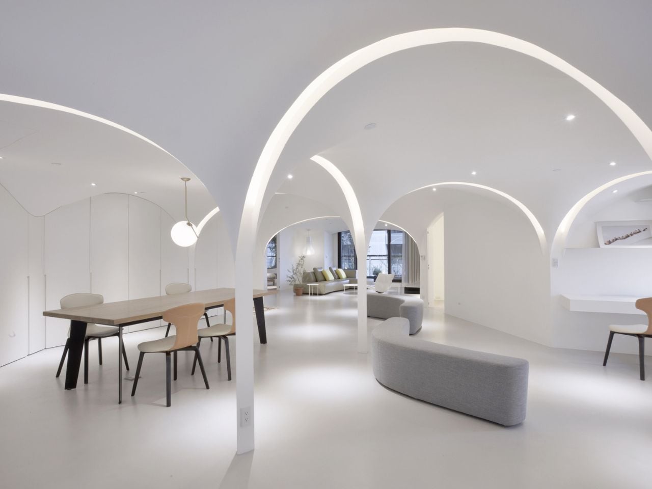 The result is a home that feels both minimal and richly atmospheric. Arches lead sunlight inward; curves erase the harshness of structural edges; air movement becomes part of the spatial choreography. Nothing is loud, yet everything is intentional. The apartment no longer behaves like a series of rooms; it behaves like an environment.