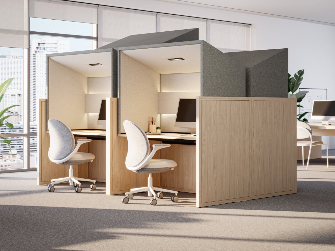 The rhythm of open offices is great until you need to concentrate or take a video call. The energy becomes noise, conversations drift across the floor, and people end up camping in meeting rooms or wearing noise-cancelling headphones all day. The ad hoc solutions never quite work, and what is missing is a middle ground, something more substantial than a desk but less isolating than a full pod.