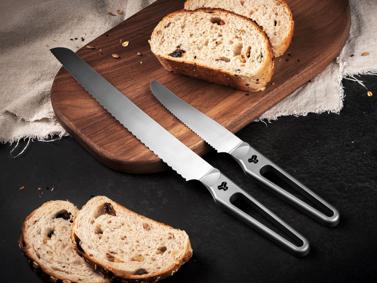 Titanion is a Hong Kong-based brand with three years of focused research into bringing aerospace-grade titanium materials into everyday kitchen use. Their previous tools have already attracted over 5,000 professional chefs and dessert masters as loyal users. The APEX series is their most knife-forward move yet: two serrated blades, a Titanium Bread Knife and a Titanium Multifunctional Serrated Knife. The blade is forged from high-performance 10Cr15MoV steel with precision serrated edges, boasting outstanding hardness, wear resistance, and long-lasting sharpness. Titanion claims this is the first serrated kitchen knife on the market to feature a titanium alloy handle.