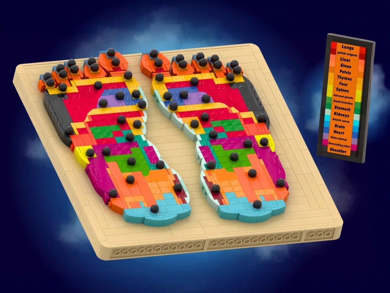 The 820-brick MOC comes with the foot mat itself, color coded to perfection with different zones that supposedly stimulate different parts of the body. Each kit also comes with a coded legend that lets you see which color is assigned to which body part. Not that we’re medical professionals (please don’t take this as medical advice), but standing on the mat while having pressure applied (thanks to the LEGO studs) on different parts of the foot is known to be able to cure diseases and boost recovery. Who knew standing on LEGO bricks could be this therapeutic?!