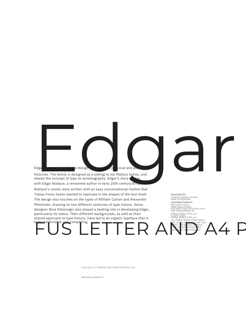 Tobias Frere-Jones needs little introduction. He’s one of the world’s leading type designers and educators, having created indelible typefaces woven into our visual lexicon: Community Gothic, Whitney, Gotham, to name just a few. Ten years ago, he started his namesake foundry, and with its founding, he released its first retail typeface, Mallory. At the time, Frere-Jones called the sans serif “a personal experiment in dual citizenship.” He had the idea for a companion typeface, but it needed some time to marinate. That typeface, Edgar, debuts as Frere-Jones Type celebrates its tenth birthday. As Mallory’s serif sibling, Edgar is also a study in what Frere-Jones calls “type as autobiography.”