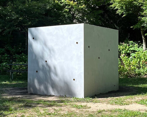 The post twin concrete cube sculptures link rokko and berlin through tiny video transmission holes appeared first on designboom | architecture & design magazine.