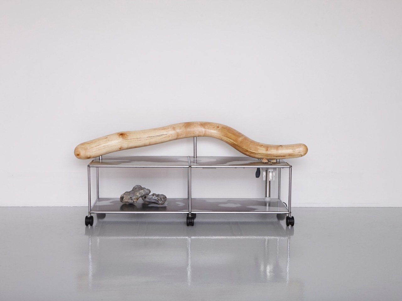 Lloyd Winter’s entry looks as if it has been abandoned for years. Weathered paint, rusted bolts and a patina of dust give the piece a deliberately aged appearance, prompting viewers to consider the life cycle of objects and the beauty of decay. Josefin Johansson contributed a sleek bench that combines the classic USM geometry with a mix of reclaimed oak slats and soft upholstery, offering a comfortable seating option that still respects the system’s clean lines.