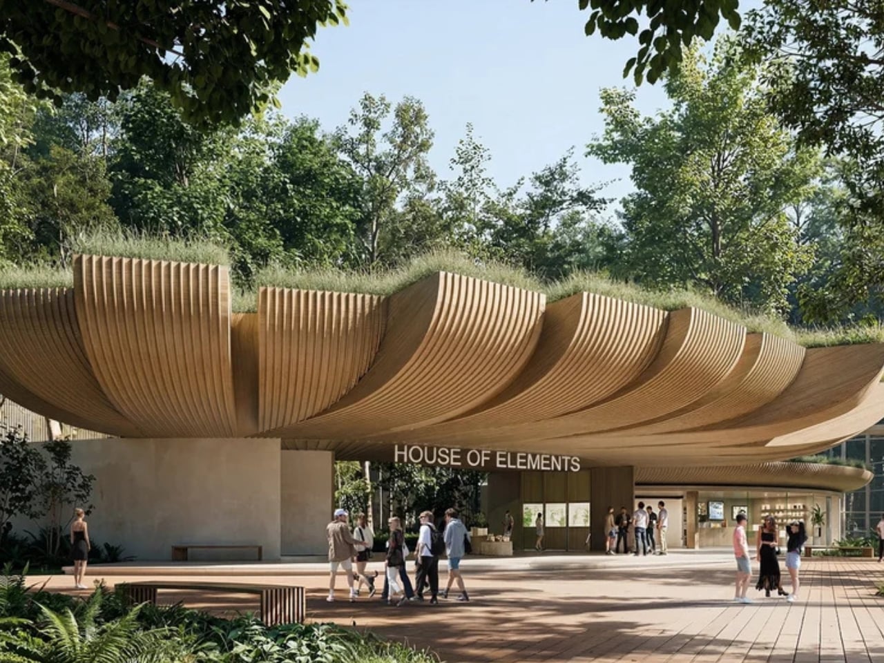 Looking at the renderings, what strikes you most is the facade. Those timber profiles create rhythm and texture while the green roofs blur the line between building and landscape. It’s biophilic design done right, not as decoration but as fundamental architectural strategy. The structure looks like it grew from the ground rather than being imposed on it.
