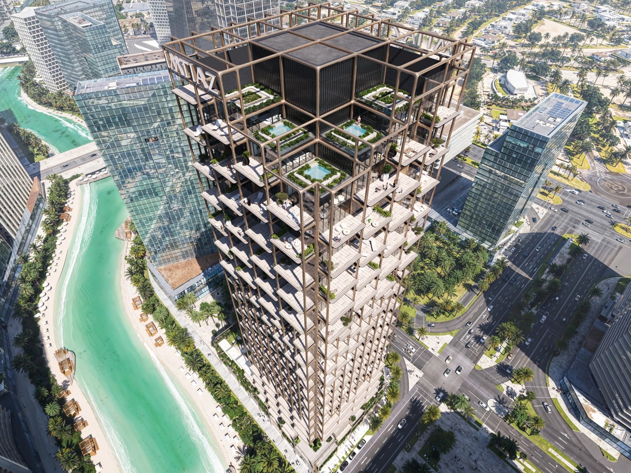 Zaha Hadid Architects has revealed designs for Symphony Tower, a 42-story residential skyscraper that brings traditional Emirati craftsmanship into conversation with contemporary architecture. Developed by Imtiaz Developments, the tower rises within Dubai’s emerging Horizon district, positioned between the Meydan Racecourse and the protected wetlands of Ras Al Khor at the historic Dubai Creek. The 38,000-square-meter development represents a significant addition to the city’s constantly evolving skyline, connecting modern design ambitions to the waterway on which Dubai was originally founded.